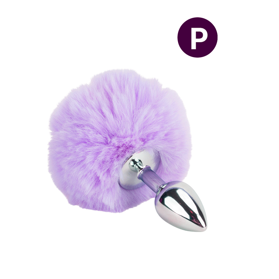 Plug anal feito em aço inoxidável com forma cônica e detalhe de pompom redondo de pelúcia. Chega mais!