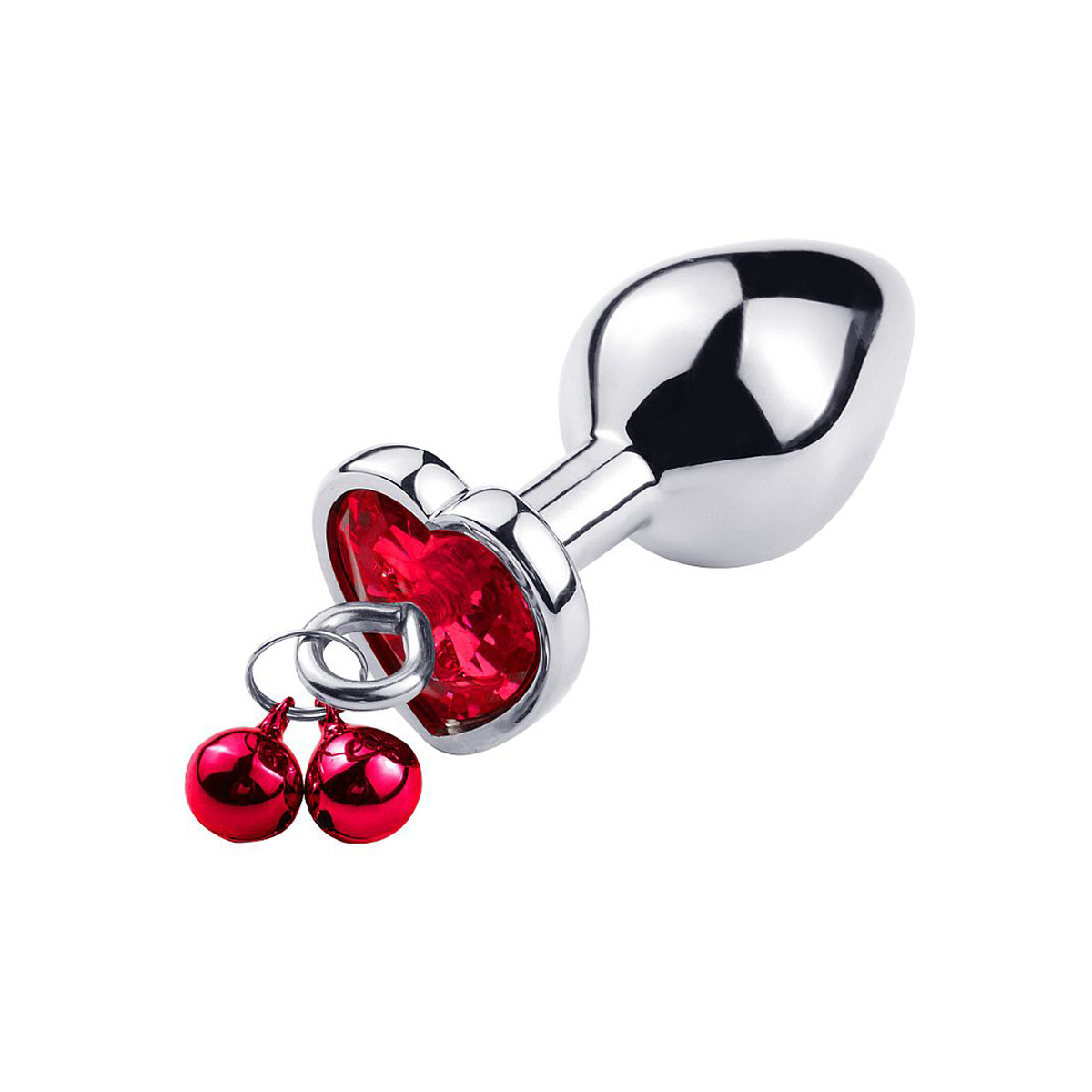 Plug anal cônico "P" em aço inoxidável com formato cônico, pedra cristal com formato de coração na base, guizo e corrente, para deixar a brincadeira mais divertida! Pronta para liberar seu lado mais ousado? Vem saber mais aqui!