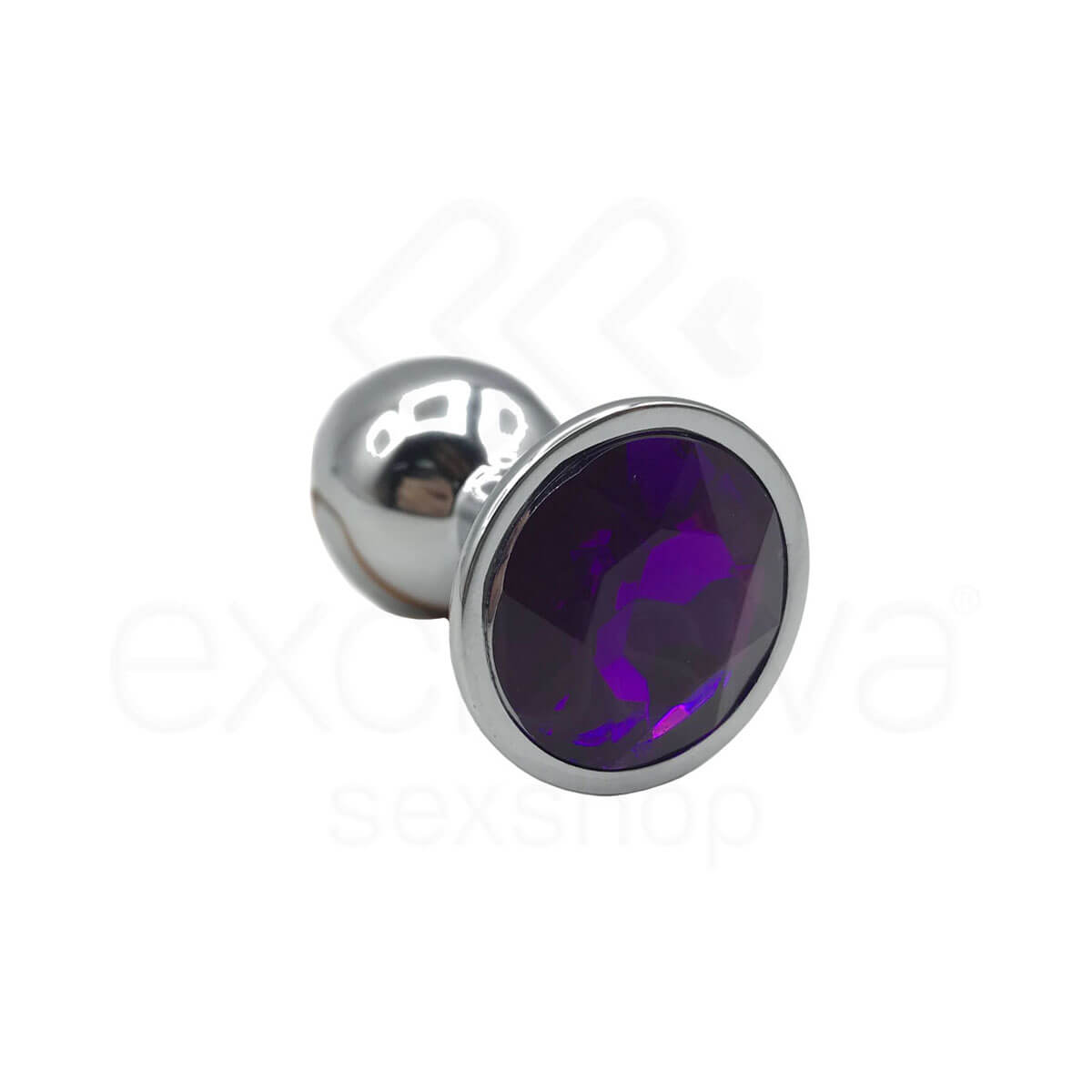 Plug anal "P" feito em alumínio polido de altíssima qualidade no formato cônico com joia na base. Ideal para praticantes e iniciantes da dilatação anal.