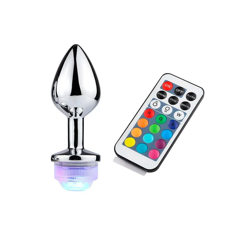 Plug anal feito em alumínio que não faz mal à pele, com luz de LED e controle sem fio. Tudo para que seus momentos de prazer sejam mais divertidos. Chega mais!