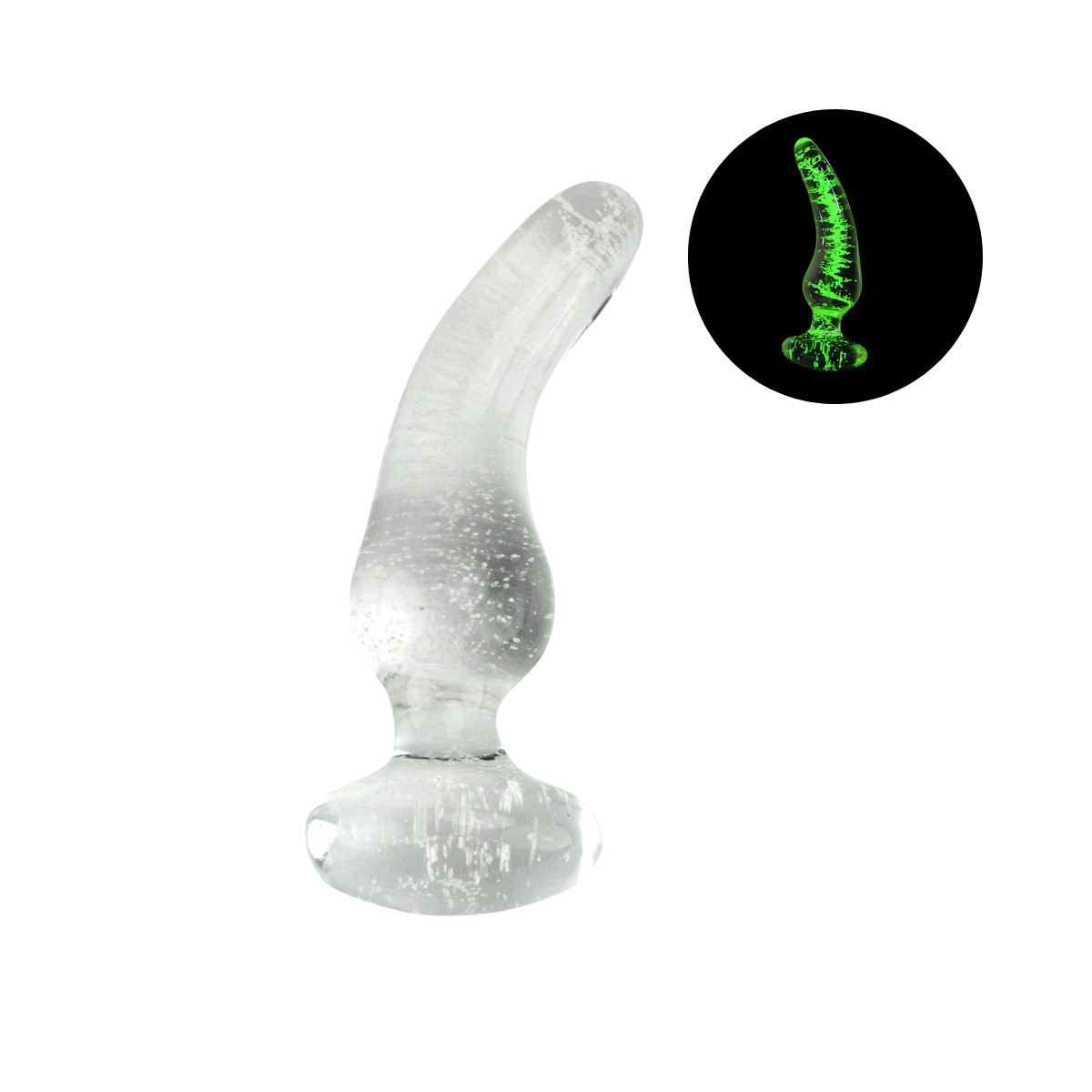 Plug Anal em Vidro Resistente com Curvatura que Brilha no Escuro, proporciona prazer intenso e uma experiência visual única, ideal para apimentar suas noites no escurinho. Sinta a magia do brilho e explore seu lado mais ousado. Vem saber mais!