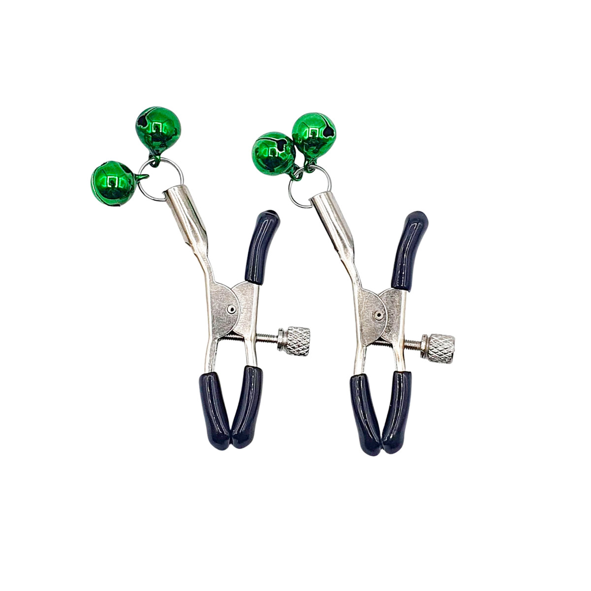 Par de grampos para mamilos em metal de altíssima qualidade com ajuste de pressão, pontas feitas em borracha e pequenos sinos, perfeita para deixar seu tesão lá nas alturas. Quer saber um segredo? Te conto aqui embaixo!