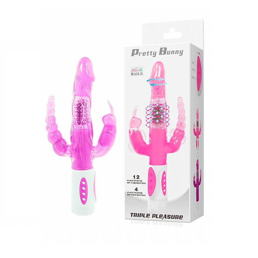 Vibrador rotativo triplo com 12 modos de vibração e 4 modos de rotação. Confeccionado em silicone atóxico!