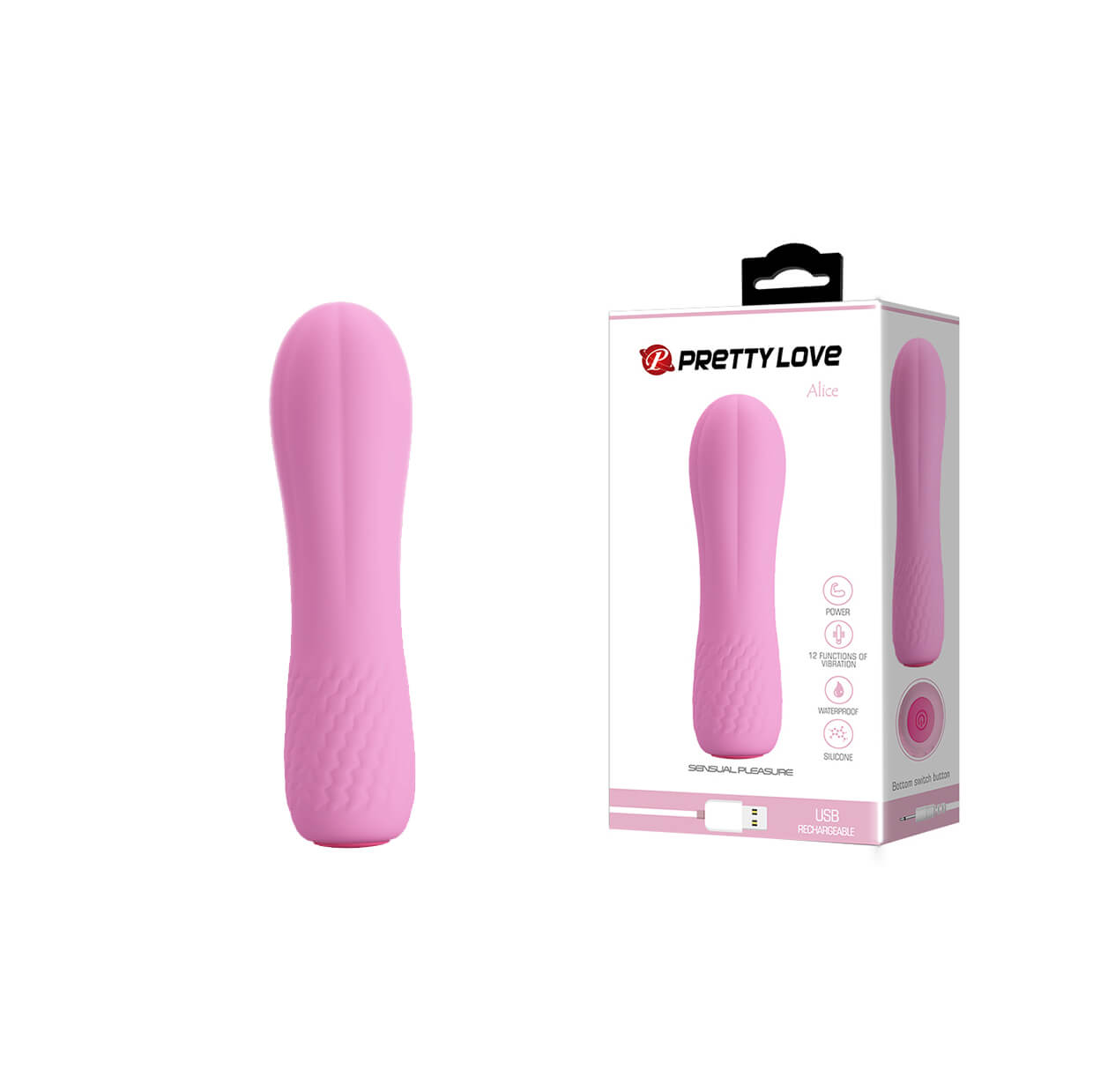 Pretty love Alice é um vibrador confeccionado em silicone soft touch com 12 modos de vibrações extremamente silenciosas e ponta arredondada.