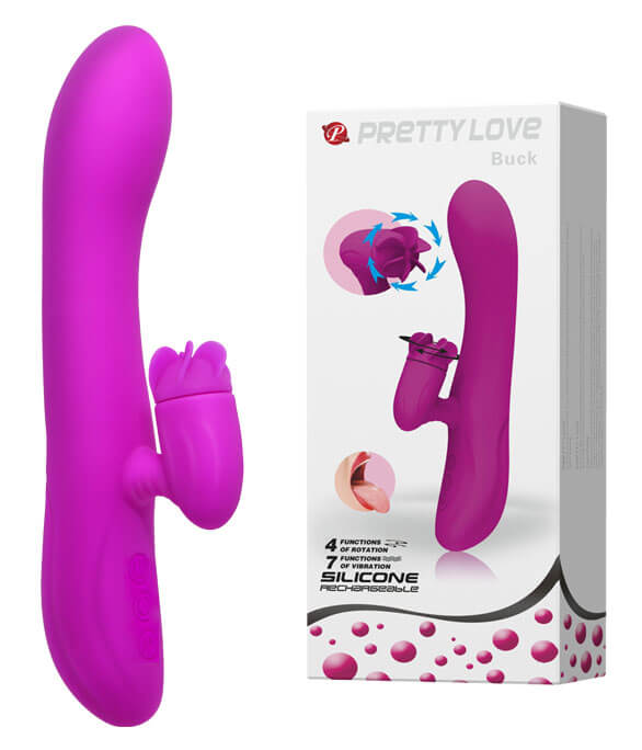 Vibrador recarregável com estimulador de clítoris, rotativo, 4 funções de rotação e 7 funções de vibração para estimular o ponto G, confeccionado em silicone macio. Saiba mais!