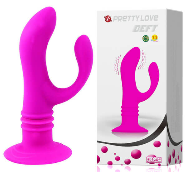 Plug anal com leve curvatura e plug lateral para deixar as noites mais intensas. Com 10 velocidades de vibração, ventosa e feita em silicone.