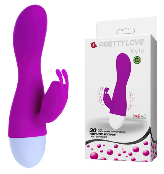 Mini vibrador em silicone com estimulador de clítoris em formato de coelho, leve curvatura para estimulação do ponto G e 30 níveis de vibração.