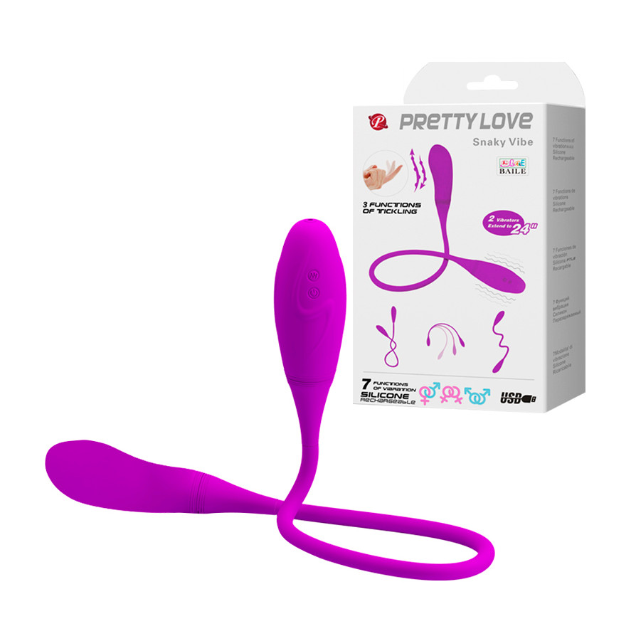 Vibrador duplo, recarregável, feito em silicone. Possui formato de ogiva nas extremidades, 7 modos de vibração, e estimulador de ponto G em uma das extremidades. Ufa, calma que ainda tem mais!