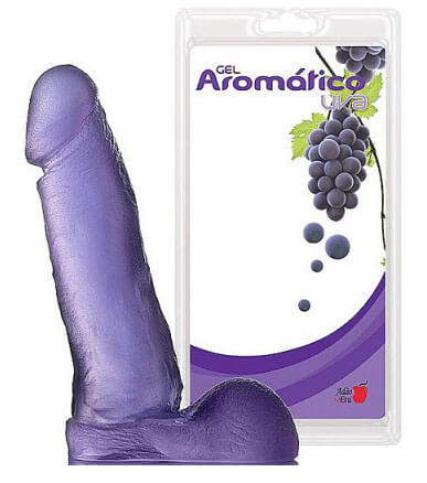 Prótese com aroma de uva, feito em pvc atóxico de tamanho: 20 x 4,5 cm. Contém escroto e saliências bem semelhantes a veias para maior satisfação, desfrute já dessa linda prótese translucida.