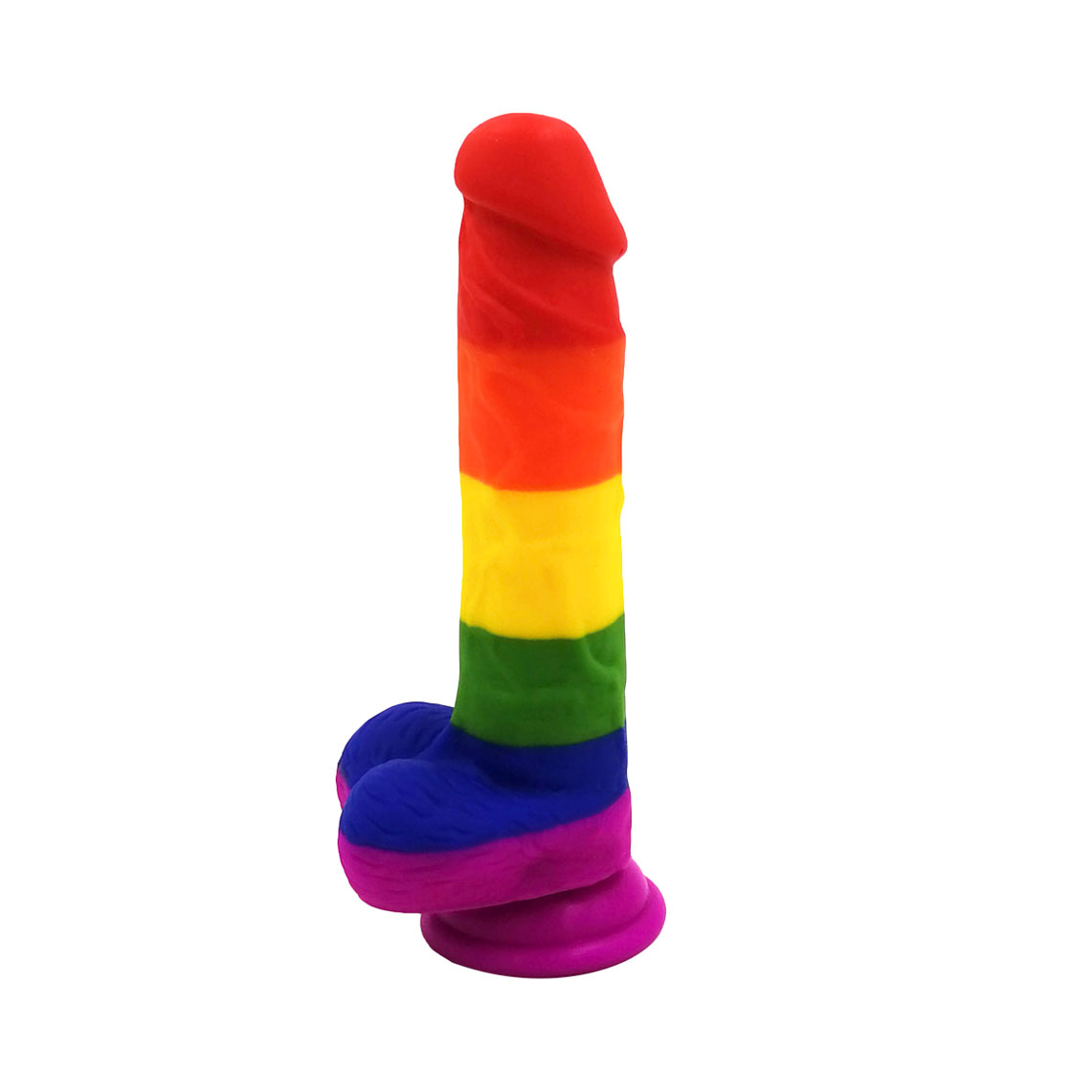 Prótese Peniana com cores vibrantes do arco-íris da Ny Toys, com 15 cm de comprimento penetrável e base em ventosa, ideal para experiências realísticas. Seu material macio, atóxico e resistente à água!