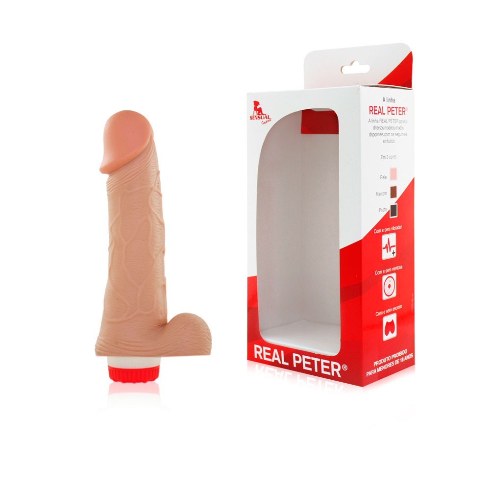 Prótese realística em formato de pênis com glande definida, veias salientes, escroto e vibração com multivelocidade feito em PVC material super macio de toque suave ao corpo!