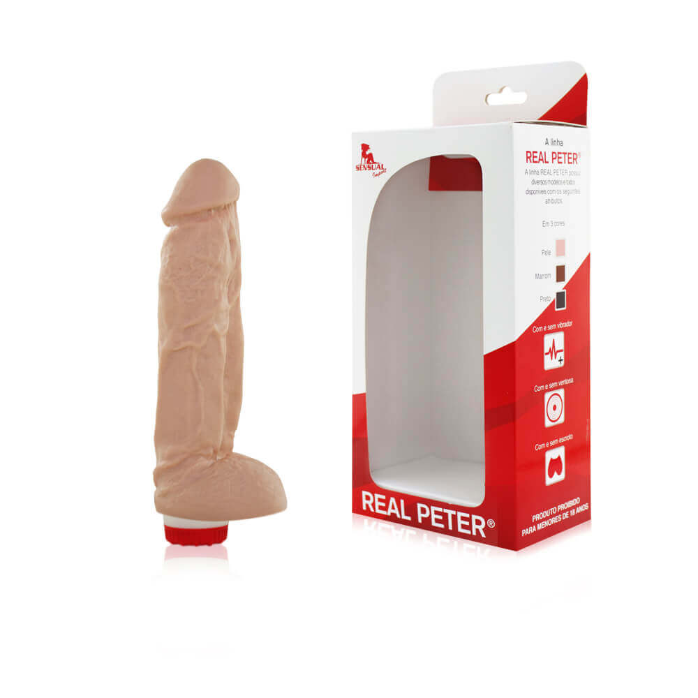Prótese peniana realística, feita em PVC atóxico com glande definida, veias dilatadas e escroto, com vibração multivelocidade que garante uma penetração intensa e gostosa!