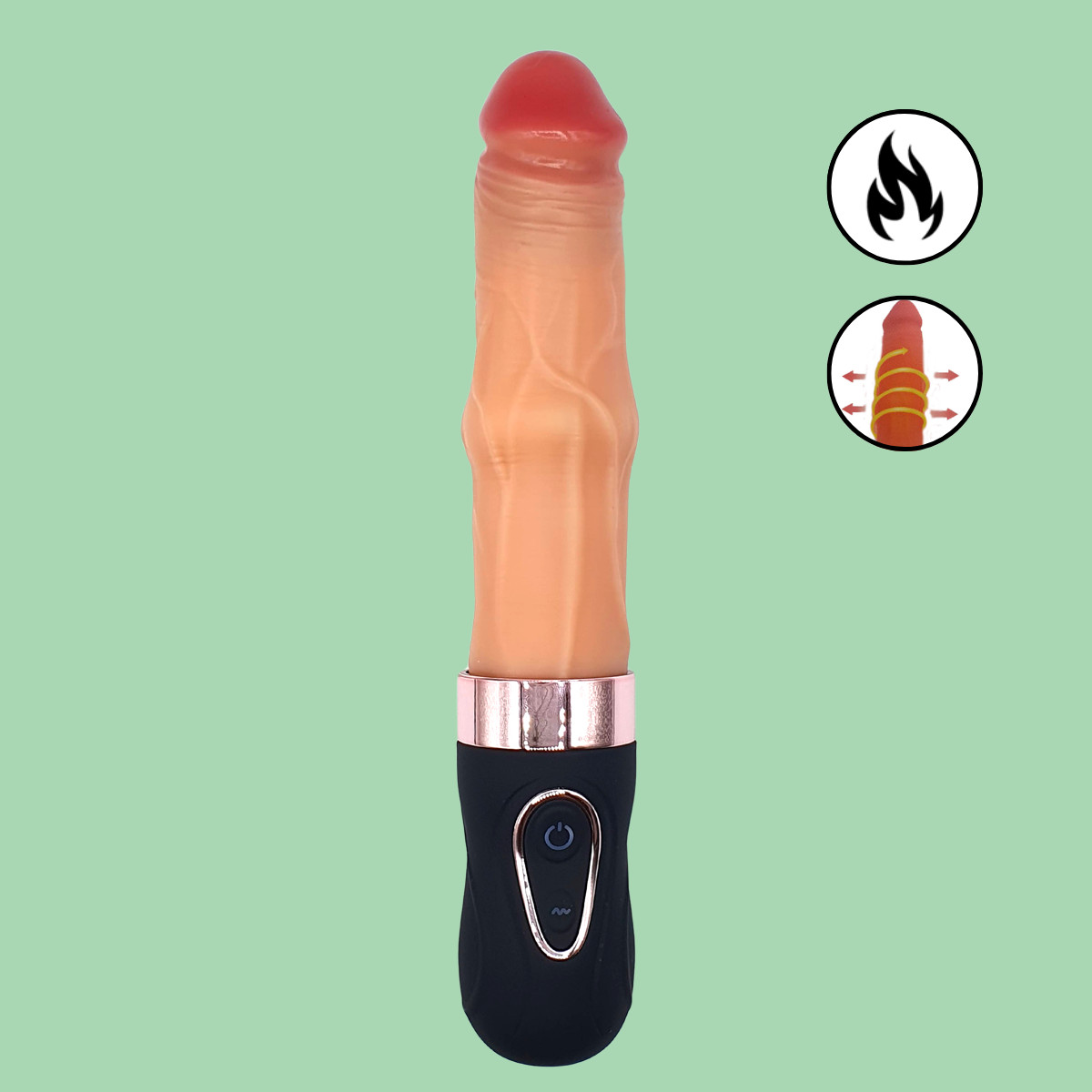 Prótese com design realista e tecnologias incríveis para você chegar ao ápice com rapidez! São 6 movimentos de vai e vem do anel massageador, 9 modos de vibração e função de aquecimento próximo à glande definida! Uau, venha conferir mais detalhes!