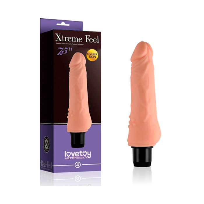 Prótese em formato de pênis realístico com glande definida, saliências massageadoras e textura saliente de veias ao longo do corpo, confeccionado em cyberskin com vibração multivelocidade!