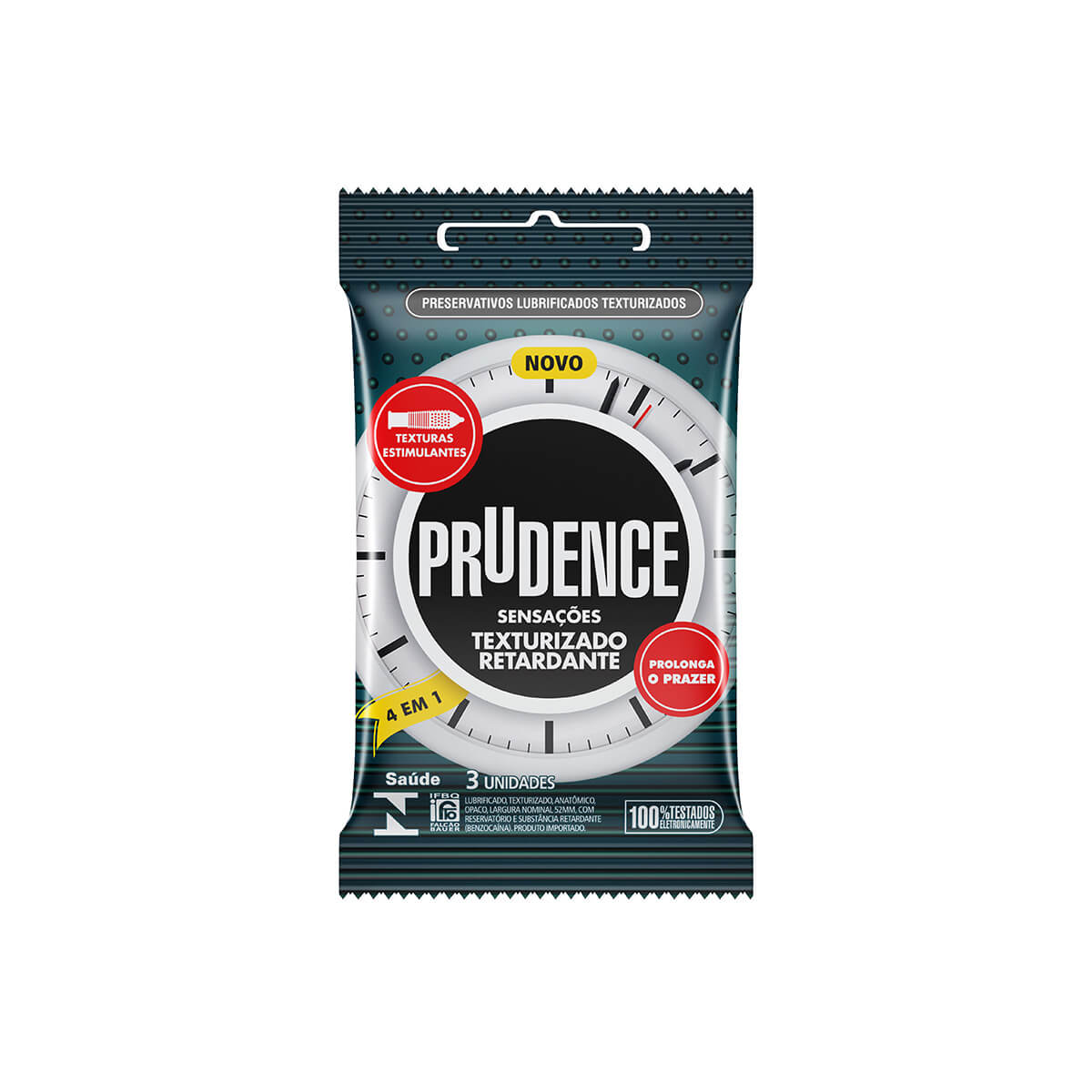 Preservativo em látex com lubrificante retardante com benzocaína na parte interna e textura estimulante que acelera o orgasmo da mulher.
