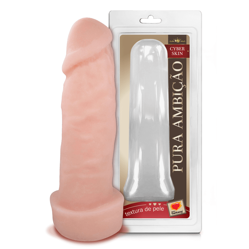 Prótese em formato de pênis realístico com glande definida e textura de veias salientes ao longo do corpo, confeccionado em cyberskin.
