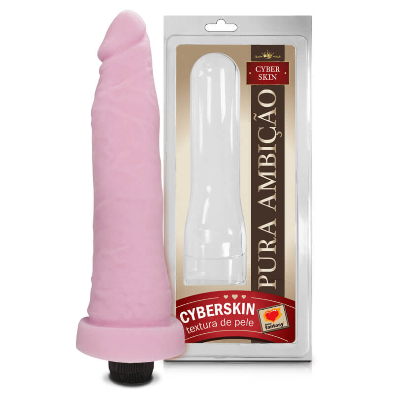 Prótese em formato de pênis realístico com glande definida e textura de veias ao longo do corpo, confeccionado em cyberskin com vibração multivelocidade.