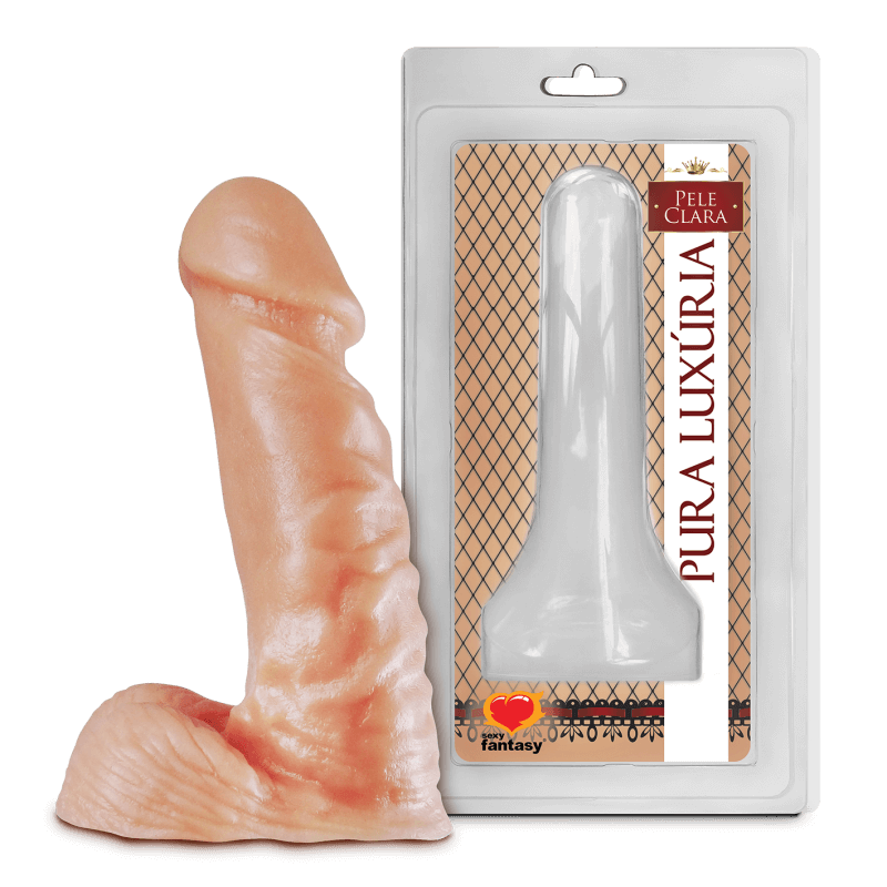 Pênis realístico confeccionado em Plastisol macio e suave ao toque, possui glande definida, textura de veias salientes e escroto.