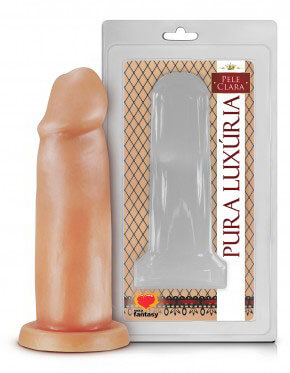 Pênis com 13 centímetros de comprimento por 4 centímetros de diâmetro feito em PVC, com glande definida, corpo liso e base achatada para cinta peniana.