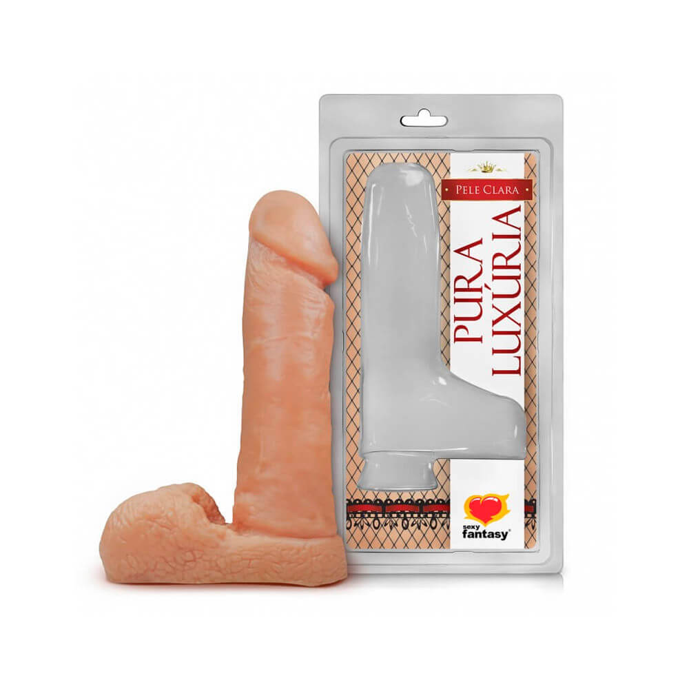 Prótese confeccionada em plastisol em formato de pênis com glande definida, Saliências e escroto, perfeita para apimentar e inovar na relação do casal.