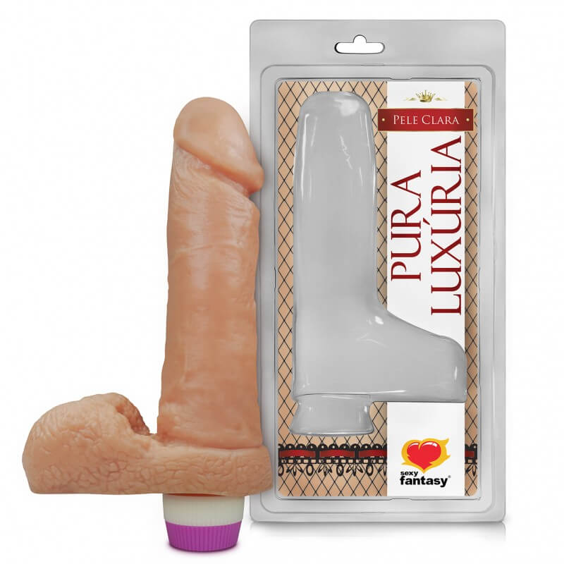 Pênis realístico confeccionado em PVC macio, atóxico e suave ao toque. Possui glande definida, saliências, escroto e vibração multivelocidade.