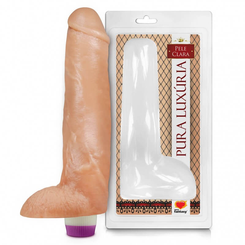 Pênis realístico confeccionado em Plastisol macio e suave ao toque, possui glande definida, Saliências, escroto e vibro multivelocidade.
