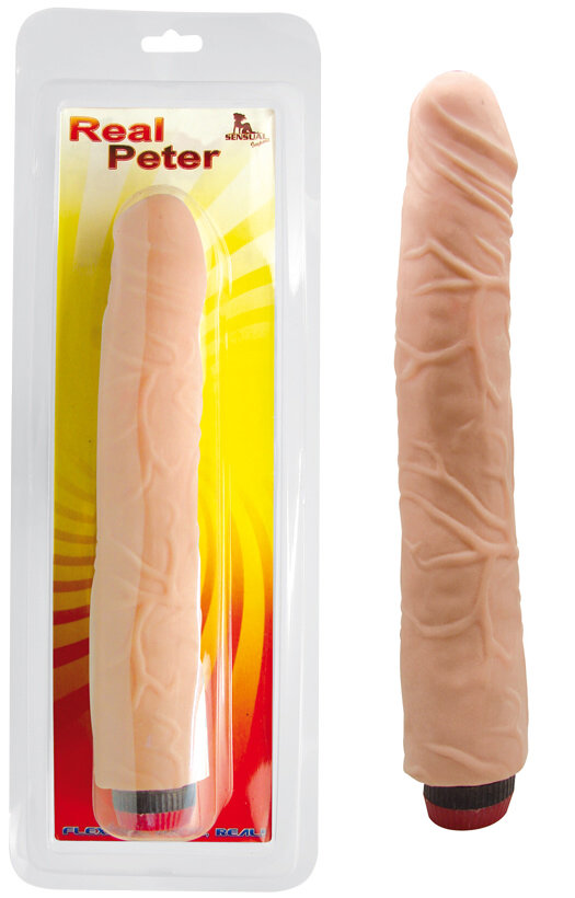 Prótese super realística, totalmente flexível e macia com veias saltadas e potente vibração, controlada por botão giratório na base.