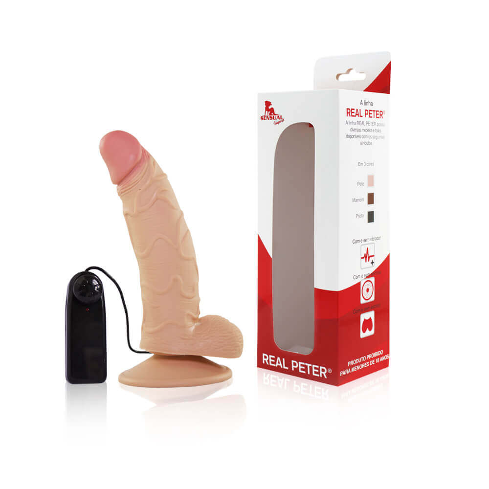 Real Peter - Prótese em formato de pênis curvo realístico com vibro, ventosa e controle com fio. Perfeito para novas sensações!