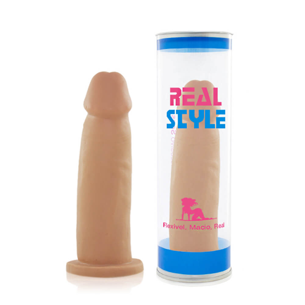 Prótese Realística em forma de pênis ereto com veias suaves, glande definida e base achatada. Perfeita para apimentar a relação ou a masturbação.
