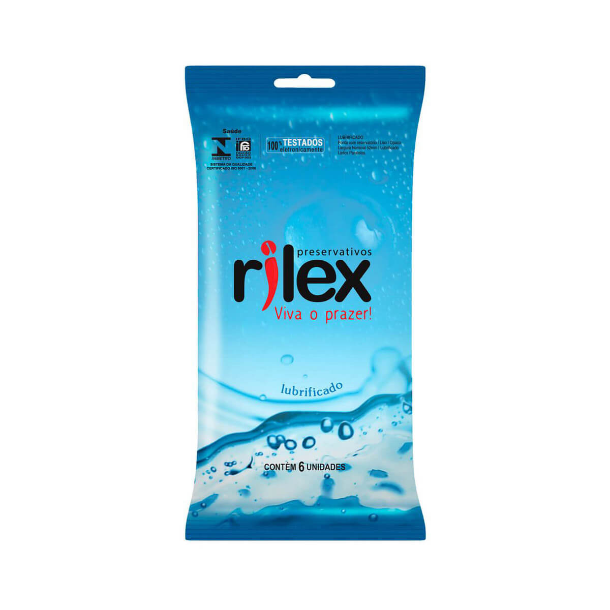 Preservativo masculino lubrificado, testado 100% eletronicamente, disponível em embalagem econômica de 6 unidades, feito em látex de borracha natural e óleo de silicone.