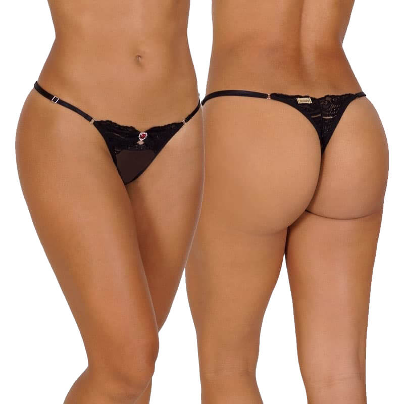 Calcinha fio dental com alça regulável e pingente na renda. Não deixe de experimentar.