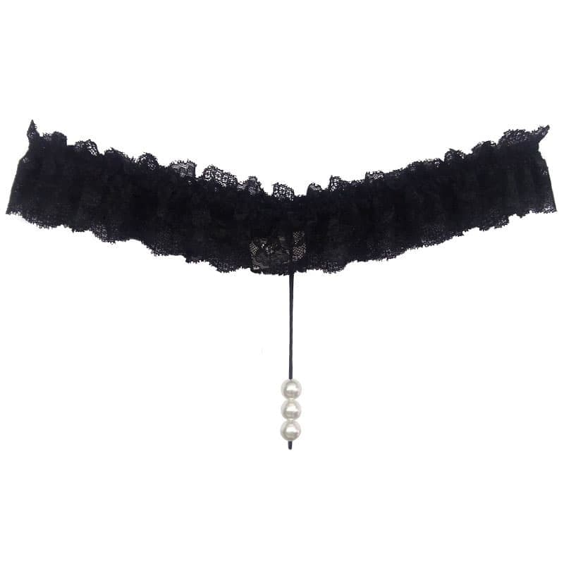 Calcinha fio dental com detalhe de jóia confeccionado em renda.