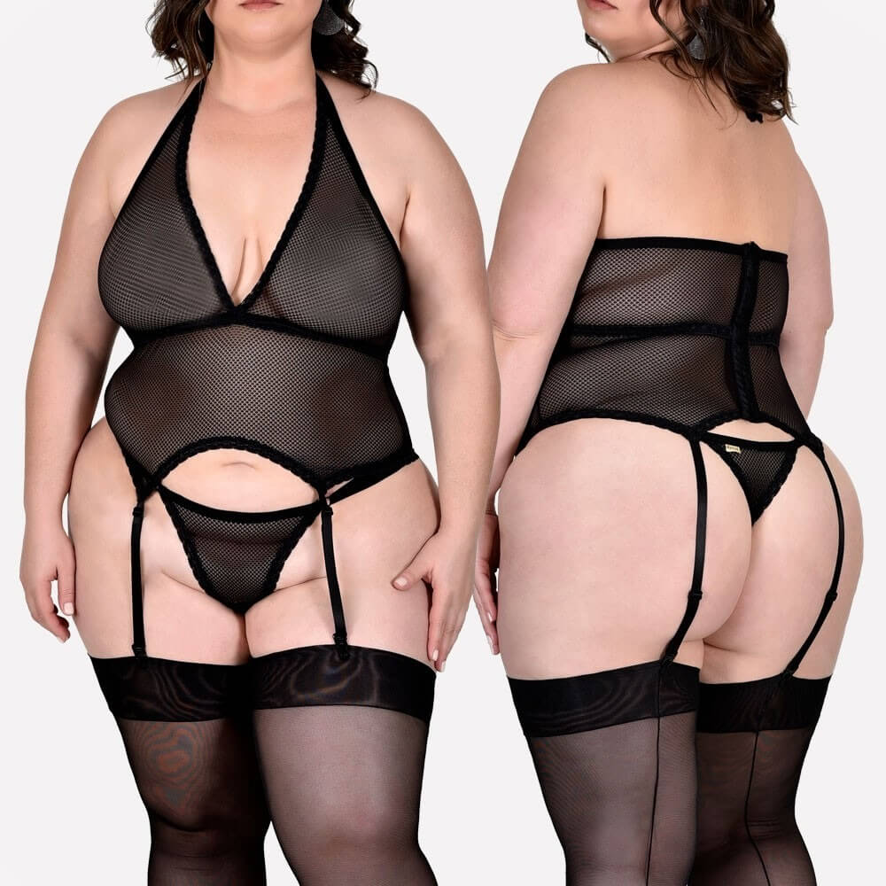 Sensual conjunto com espartilho e calcinha fio dental, ambos com transparência, para você arrasar nas noites de amor.