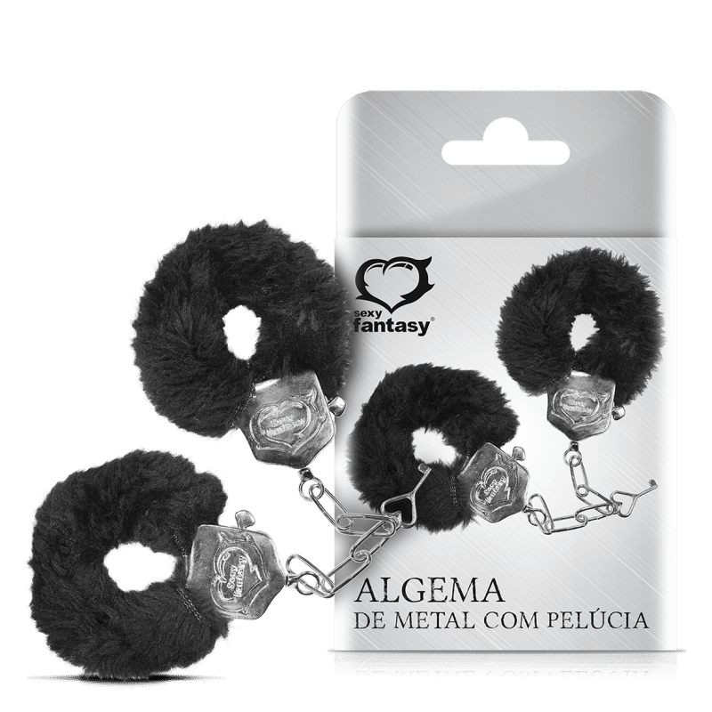 Algema de metal com capa de pelúcia removível, chave e trava de segurança. Ideal para casais que querem apimentar a sua relação!