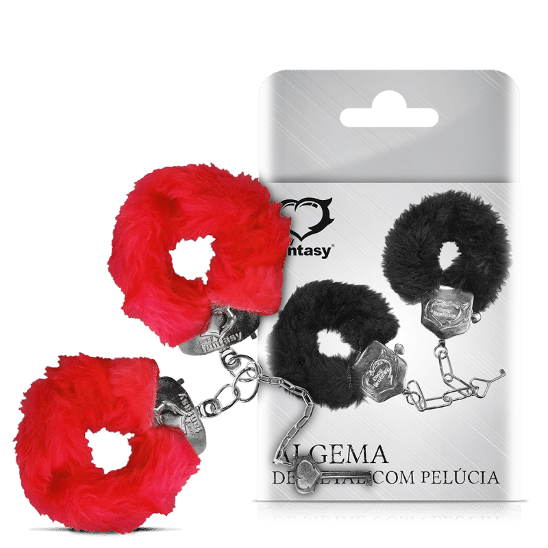 Algema de metal com capa de pelúcia removível, chave e trava de segurança. Ideal para casais que querem apimentar a sua relação!