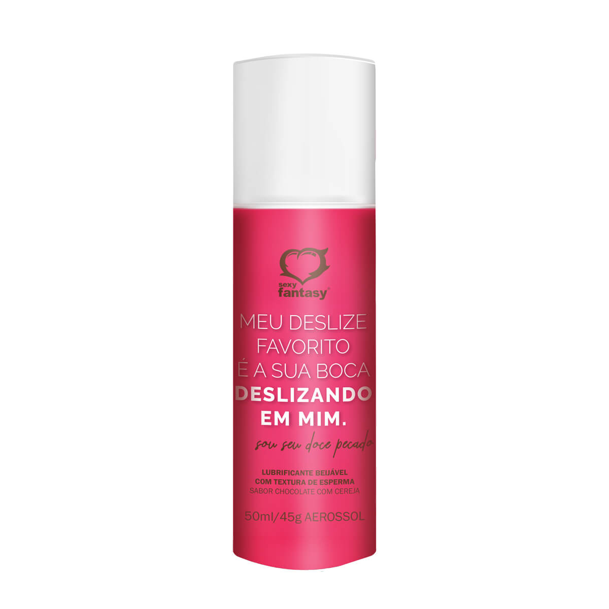 Lubrificante beijável sexy fantasy com textura de esperma e um delicioso sabor de chocolate com cereja com lubrificação suave feita em aerossol, contém 50 ml.