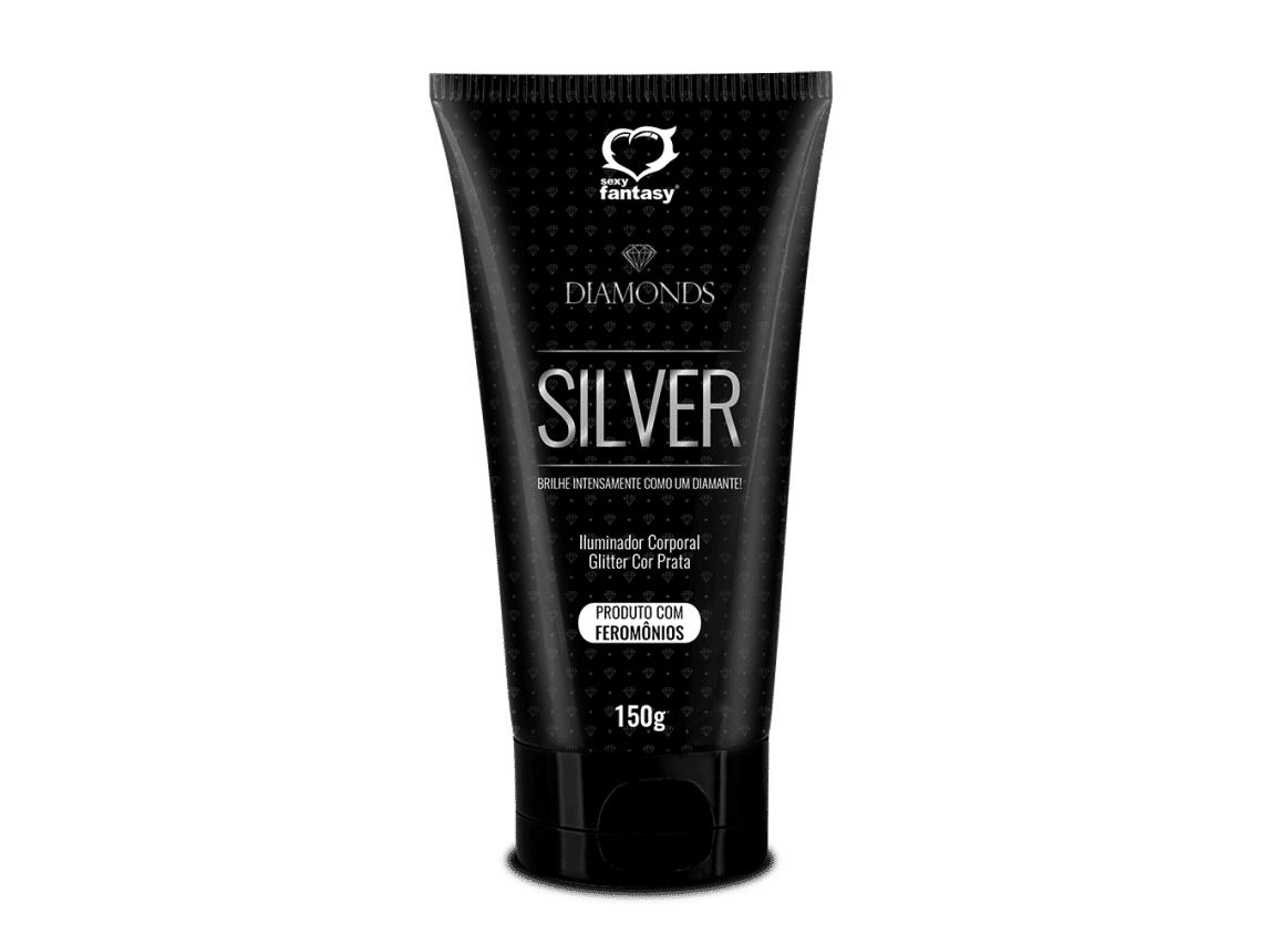 Loção com glitter na cor prata, contém feromônios.