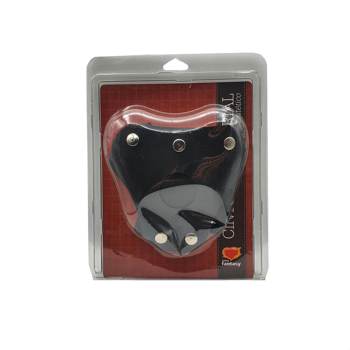 Cinta peniana avulsa, confeccionada em couro sintético com regulagem na cintura e detalhes em rebites. Possui abertura inferior para uma penetração simultânea.