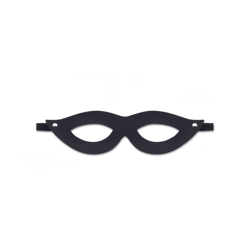 Máscara tiazinha confeccionada em couro sintético com rebites e elástico.