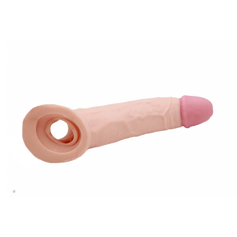 Capa peniana em cyberskin, ultra macia e flexível. Com glande definida preenchida,veias salientes e anel para escroto.