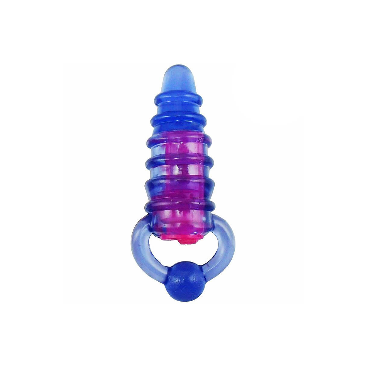 Mini vibrador dedeira com uma única e potente vibração, é revestido por uma cápsula de silicone com textura anelar e anel que se prende ao dedo.