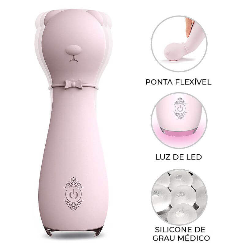 Massageador de clítoris super fofo, recarregável, confeccionado em silicone com 9 vibrações e é à prova d'água!