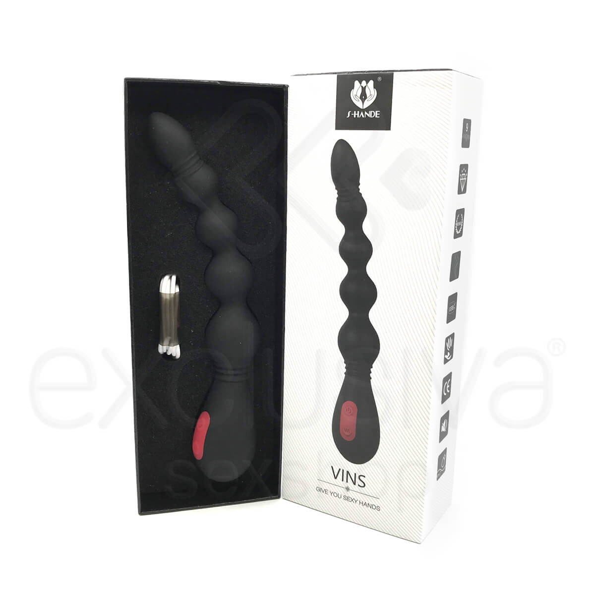 Plug anal escalonado produzido em silicone com 9 vibrações, que deixará os penetrações mais prazerosas e intensas. Chega mais para saber tudo sobre o Vins da S-Hande!