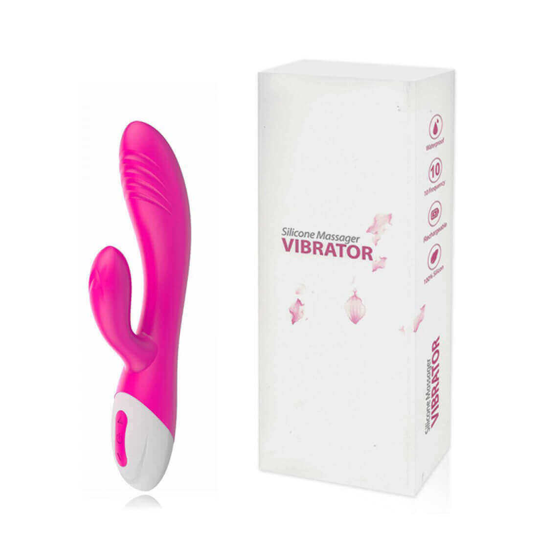 Vibrador flexível com estimulador de ponto g e clítoris, confeccionado em silicone e ABS. Contém 10 vibrações intensas e silenciosas.