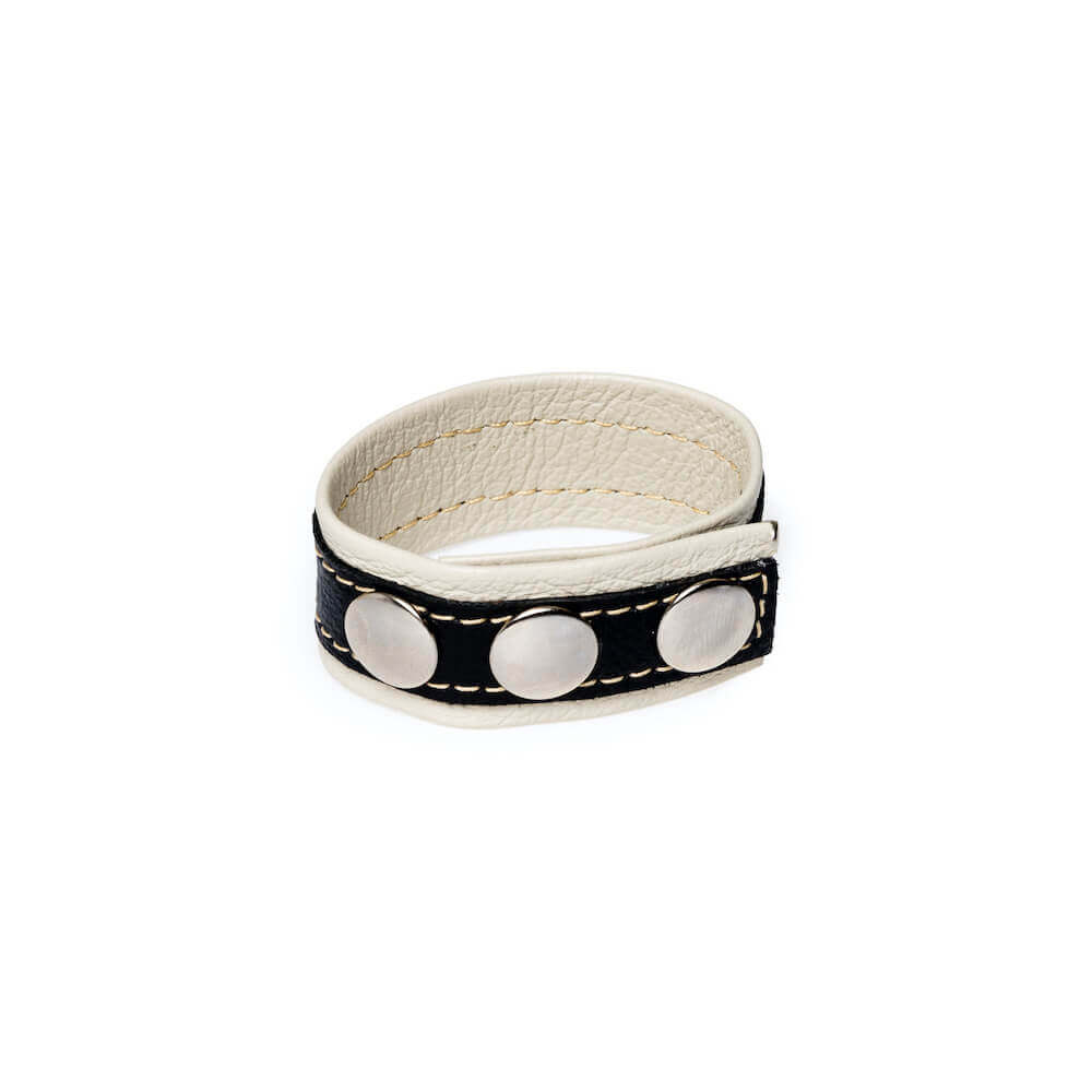 Anel Peniano Ajustável em Couro - Cor: Bege com Preto - Exclusiva