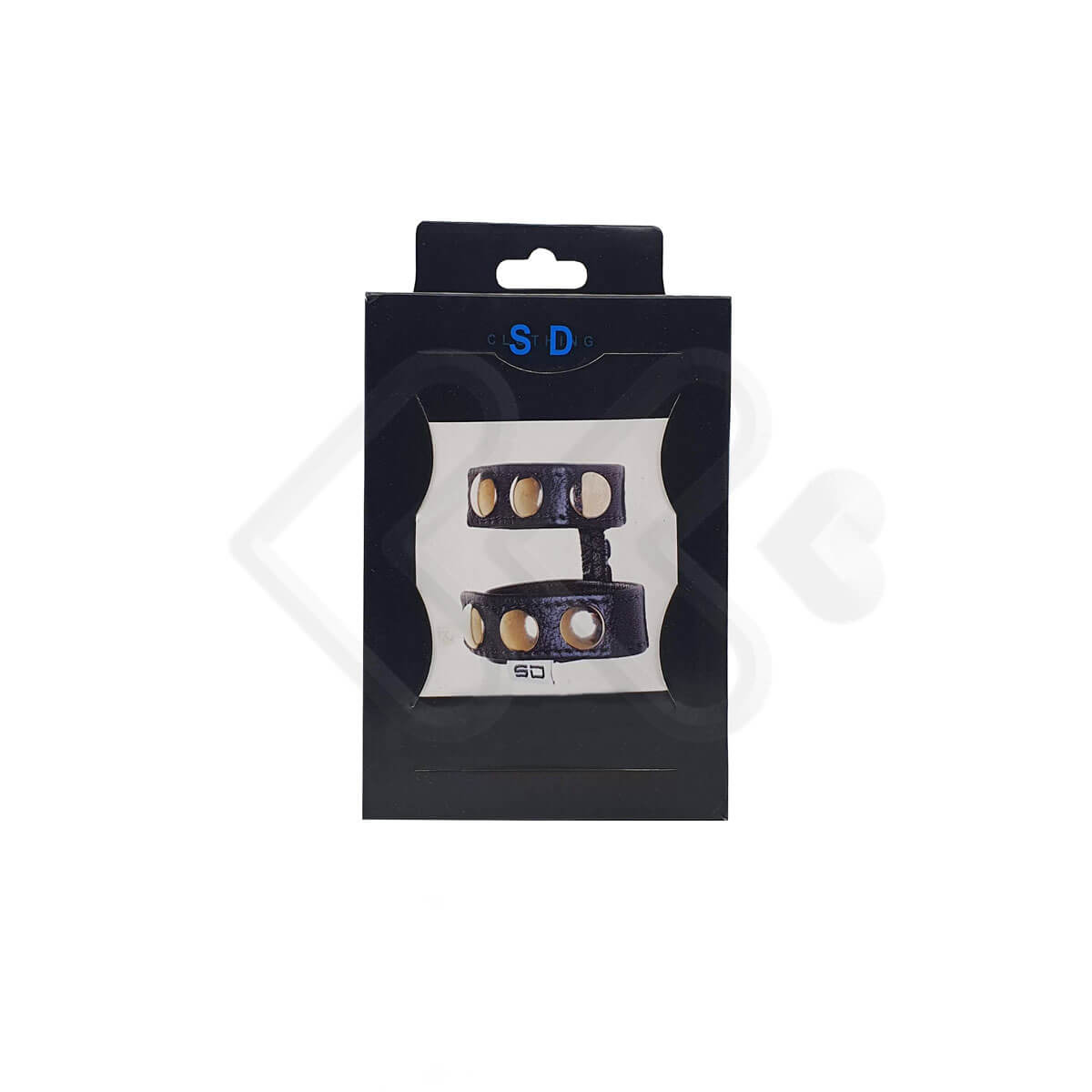 Anel peniano duplo feito em couro sintético com botões de pressão significando que pode ser utilizado em diferentes tamanhos e espessuras de pênis e escroto, fazendo com que você tenha noites incríveis e douradoras de prazeres.
