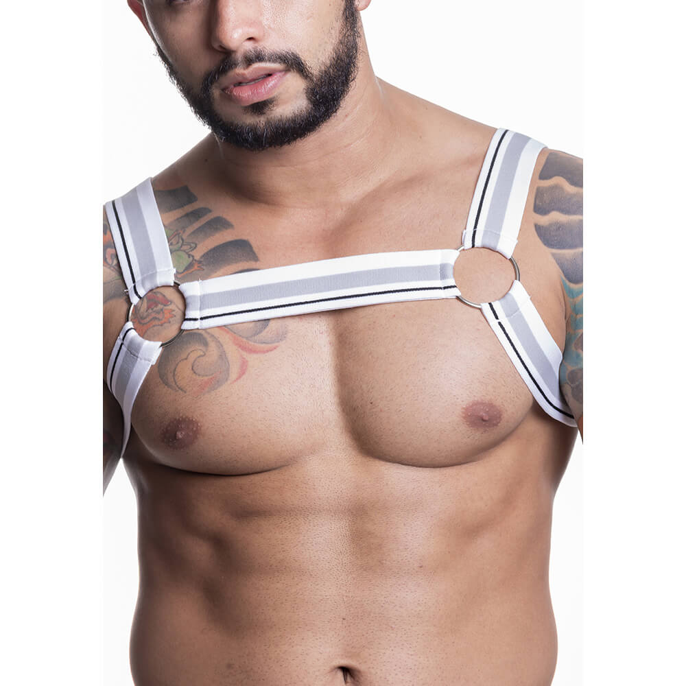 Arreio harness feito em tiras elásticas largas e super confortáveis para você ter diversos fetiches realizados. Aproveite para apimentar seu relacionamento!