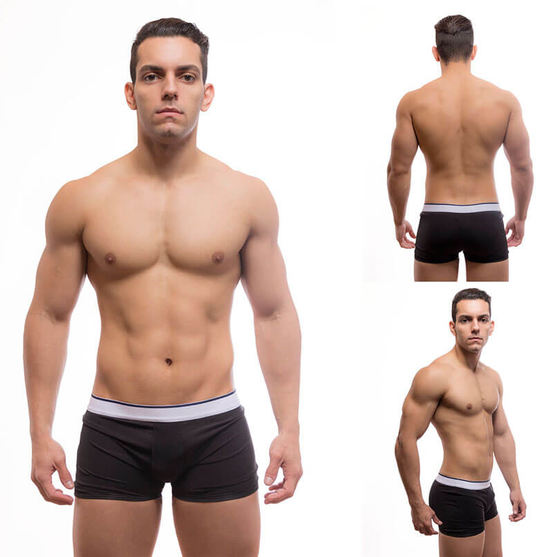 Cueca boxer com enchimento (bojo) nas nádegas e elástico reforçado na cor branca, que faz com que a peça ajuste-se perfeitamente ao corpo.