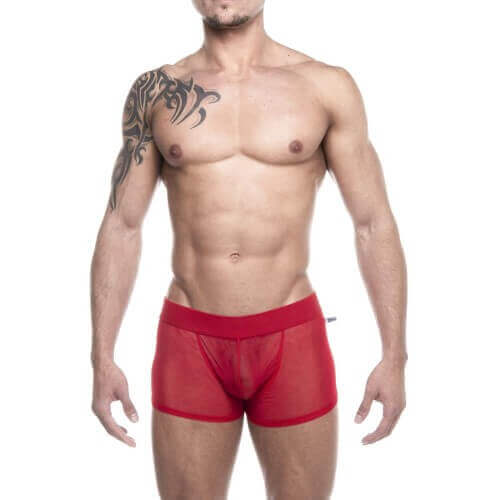 Cueca boxer confeccionada em tule transparente que possui um elástico resistente e confortável.