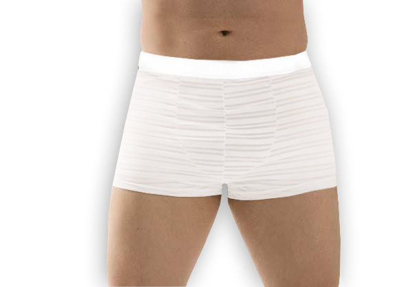 Cueca boxer confeccionada em tule transparente listrado na cor branca, possui alças elásticas que aumentam o conforto.